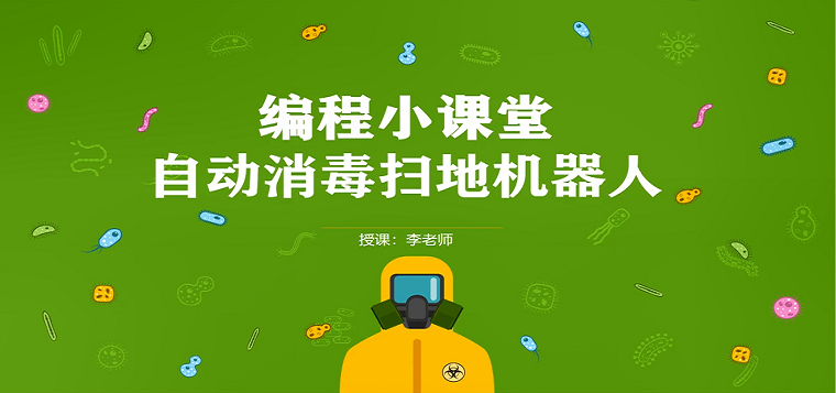 课程介绍 本节课是使用“编程猫”软件,制作完成自动消毒扫地机器人,通过制作自动消毒的机器人,学会使用了“如果...那么...”、“循环”模块,使机器人喷洒消毒液,消毒液碰到病毒的时候使病毒消失。 查看更多∨ 课程大纲 1.01课程介绍 2.02软件下载 3.03软件介绍 4.04新建项目及背景设置 5.05开始和停止 6.06上传及下载角色 7.07角色调整 8.08消毒扫地机器人及消毒液脚本制作 9.09病毒脚本制作及复制粘贴 10.10程序调试及改进